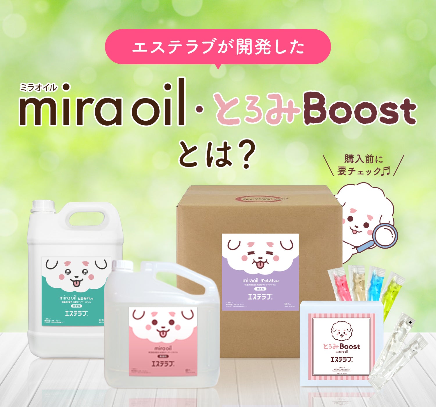 エステラブストアでは、メンズエステ業界に革命をもたらすため、数多くのメンズエステ様・セラピスト様との協力のもと、オイルに関わる全ての人の満足度をより高める最高品質のメンズエステ用マッサージオイル「ミラオイル」を開発しました。私たちが目指したのは、単にリーズナブルな価格だけでなく、「安心してご使用いただけるマッサージオイルをお届けすること」。